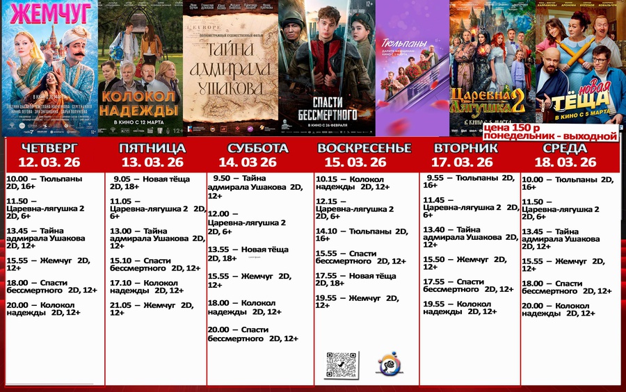 - Жемчуг 2D, 12+ (жанр - драма, комедия, семейный)